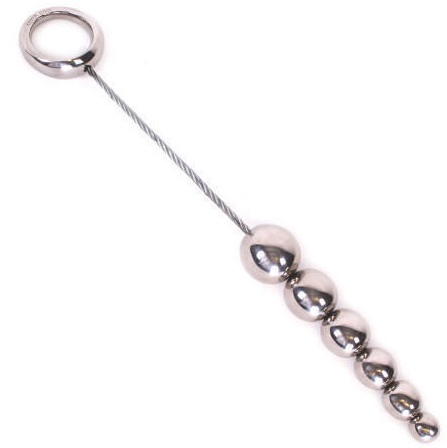 Description du produit: une aiguille en acier, sur laquelle sont enfilées des boules de métal avec un revêtement miroir de différentes tailles, ressemblant à un sapin de Noël. Une extrémité est un anneau pour retirer l'appareil, l'autre est une pointe fixe (du diamètre minimum du cordon), qui ne permet pas au reste des pois de s'effriter. Produits recommandés pour le sexe anal entre les mains des utilisateurs professionnels.