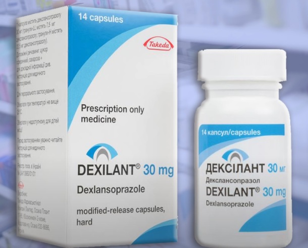 Le dernier développement était le Dexlansoprazole sous forme de capsules Dexilant. La capsule se désintègre dans l'estomac et contient 2 types de granules entérosolubles. Il y a une libération de substances actives en fonction du pH des différentes zones de l'intestin grêle, c'est-à-dire séquentiellement. Le premier pic de concentration de la substance active se produit 1 à 2 heures après l'ingestion. La deuxième phase se produit 4 à 5 heures après l'ingestion. Cette combinaison vous permet de prolonger l'action et aide à réduire la sécrétion de suc gastrique pendant une longue période.