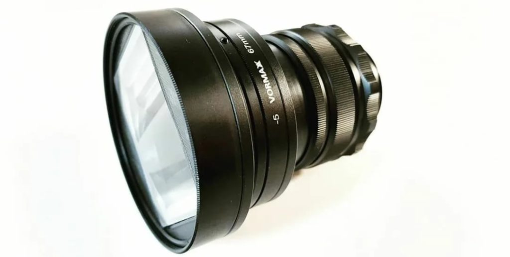 Un autre exemplaire de la société russe Vormaxlens avec un taux de compression de 1,3x. Compact, dans un boîtier métallique, fonctionne en plein format (l'effet de vignettage dans ce cas ne prendra pas plus de 10% du cadre).