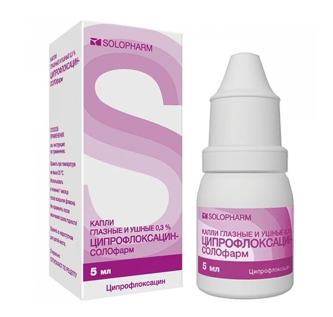 La substance active est la ciprofloxacine (fluoroquinolones à usage topique). Attribuer au traitement des maladies des yeux et des oreilles (otite externe, complications postopératoires).
