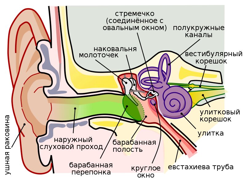 Il se propage à l'oreille avec la membrane tympanique, une cavité avec trois osselets auditifs et la trompe d'Eustache. Les enfants tombent souvent malades à cause des particularités de la structure anatomique de la trompe d'Eustache (auditive) - chez les enfants, elle a déjà un diamètre, elle est située horizontalement (chez les adultes en biais).