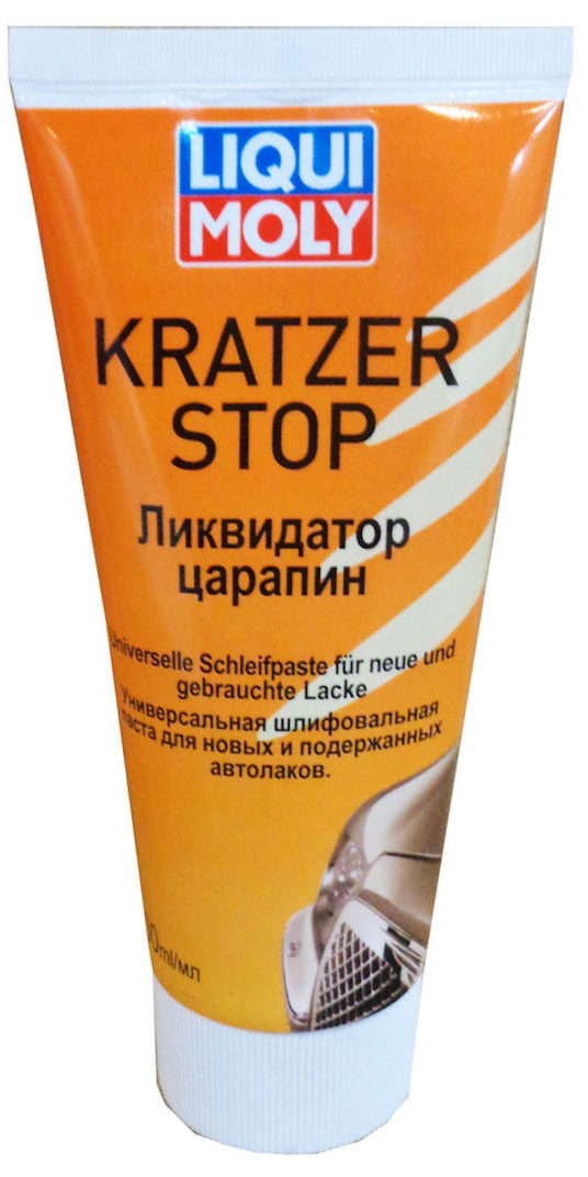 Liqui Moly Kratzer Stop est l'une des marques les plus célèbres de Russie, qui a acquis la réputation d'être un bon remède contre les défauts mécaniques et les dommages au revêtement de la carrosserie. La cire allemande contient des particules d'un élément abrasif, le produit doit donc être utilisé strictement conformément aux recommandations du fabricant, sinon le conducteur risque d'avoir des défauts supplémentaires. Le silicone et les éléments similaires sont exclus de la composition de Liquid Moli.La cire d'une entreprise allemande donnera d'excellents résultats à la fois comme coulis pour les dommages et comme couche rugueuse pour la peinture. Il est permis d'enlever le vernis et la rouille à l'aide de Liquid Moli. L'outil ajoutera de la brillance à la surface traitée. Il est permis de travailler avec des peintures métalliques, car les indicateurs alcalins de Liquid Moth se situent dans la plage normale.