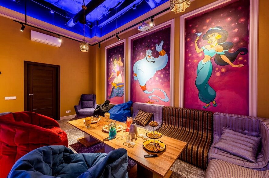Ils diffèrent par une variété de design élégant des chambres (scènes d'émissions de télévision préférées, grandes villes, contes de fées pour enfants avec des personnages de contes de fées, l'époque de l'URSS). En complément : projecteurs, grands écrans, karaoké, consoles de jeux et jeux de société.