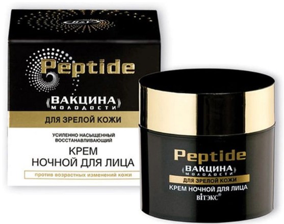 Une marque française réputée propose cette superbe crème anti-âge peptidique dans les chaînes de pharmacies.Le modèle contient des peptides naturels afin de produire activement du collagène, le complexe végétal favorise le renouvellement du derme dans les couches profondes au niveau cellulaire, l'acide hyaluronique est responsable de l'hydratation à long terme. Idéal pour les propriétaires de peaux normales et sèches, pour les peaux grasses et mixtes, la consistance est lourde.