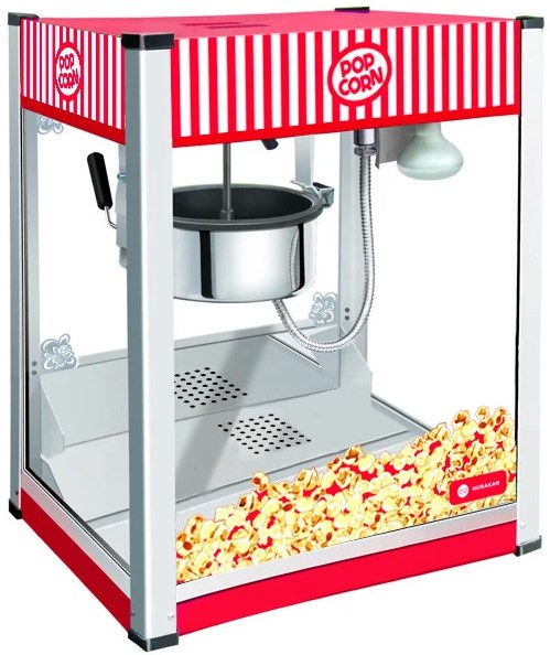 L'appareil pratique et compact pour la préparation du pop-corn, est établi sur une table. Convient à la fois à un usage professionnel et personnel. Produit 24 tasses de 240 ml en un cycle. Le bol de travail est en aluminium avec un revêtement antiadhésif. Coût : 3419 roubles.