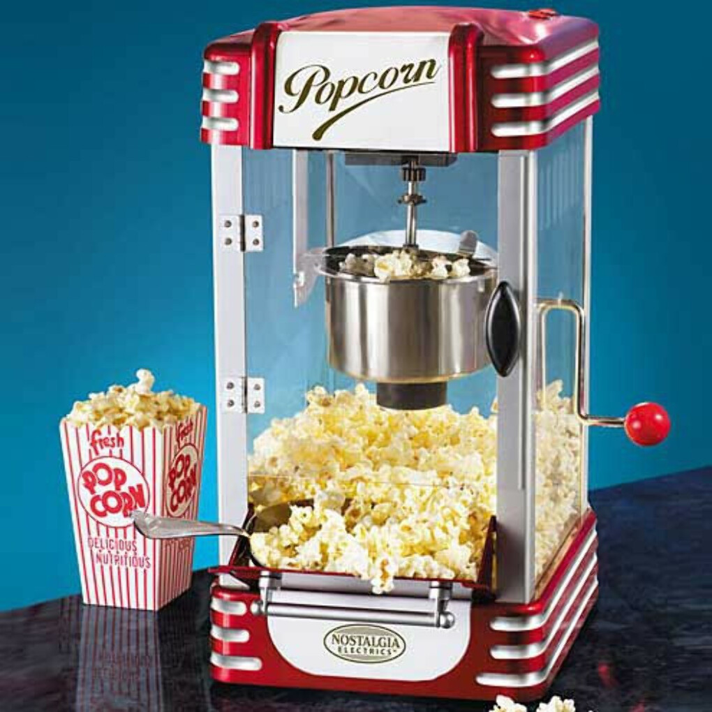 La mini-machine à pop-corn compacte prépare une petite portion (60 g) de délicieux pop-corn chaud en 3 minutes. Tout ce que vous avez à faire est de verser la bonne quantité de grains dans le fourré, d'allumer et de remplacer l'assiette. Le prix de la machine à pop-corn : 1950 roubles.