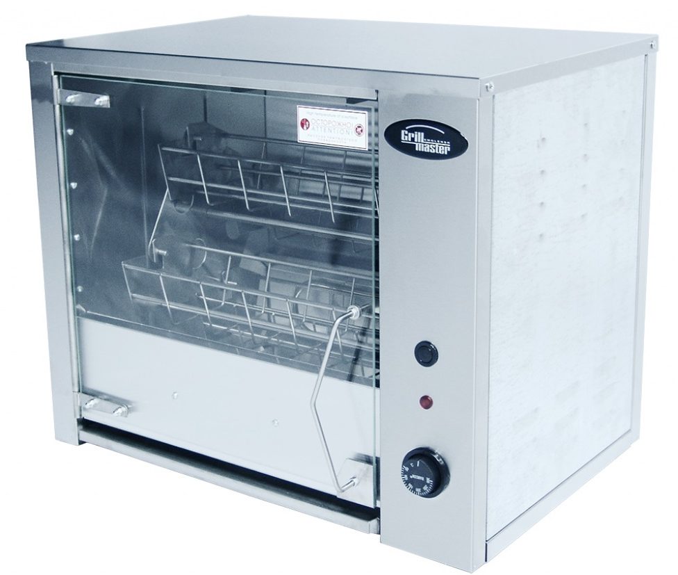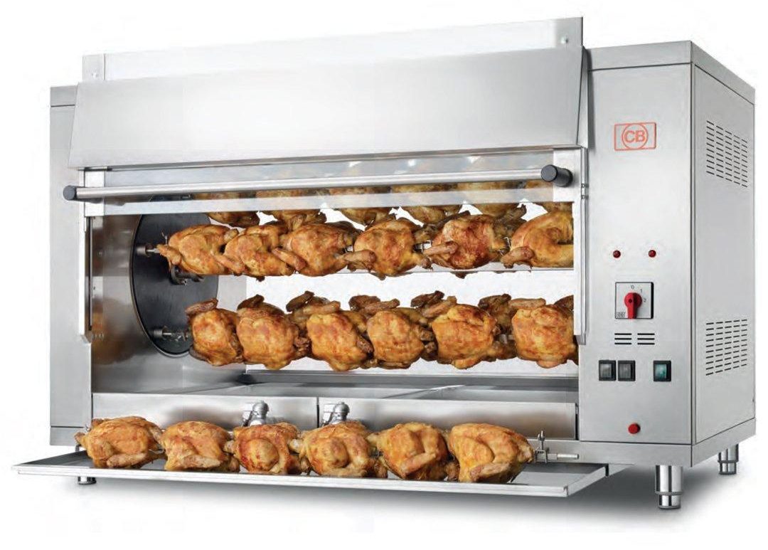 Tous les modèles existants de ce type d'équipement de chauffage diffèrent les uns des autres par la méthode de montage, de rotation, ainsi que par le volume de produits pouvant être cuits en un cycle. Selon les dimensions de l'appareil, de 8 à 64 carcasses de poulet peuvent être frites en même temps. Le temps de cuisson moyen est de quarante minutes à une heure.