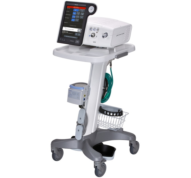 Équipement haut de gamme avec une excellente solution pour un système à double circuit pour les patients gravement malades en soins intensifs et une ventilation non invasive à circuit unique. Vous pouvez facilement basculer entre les circuits pour fournir la thérapie requise à l'heure convenue, en tenant compte des caractéristiques de chaque patient. La résistance dynamique et l'élasticité des poumons en mode invasif et non invasif avec différents contours sont mesurées en continu. La fonction de ventilation d'apnée en cas d'apnée est prise en charge. Adaptation automatique à la respiration du patient avec un haut niveau de synchronisation pour une thérapie non invasive utilisant la technologie Auto-Trak +. Possibilité de connexion à un réseau hospitalier général et affichages supplémentaires.