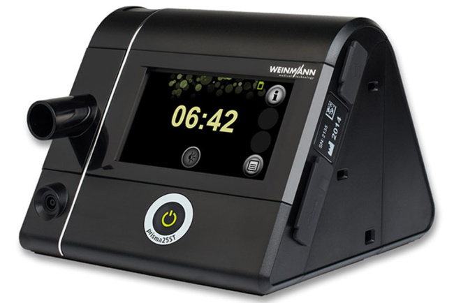 Modèle polyvalent pour la ventilation non invasive et invasive avec diverses options de surveillance. L'appareil est équipé de huit niveaux de sensibilité, séparés pour l'expiration et l'inspiration. Pressurisation à six niveaux de vitesse, dépressurisation dans un circuit non étanche à six niveaux de vitesse, dans un circuit avec une vanne à un niveau. Équipé de deux batteries - externe pendant six heures et intégrée pendant trois heures.