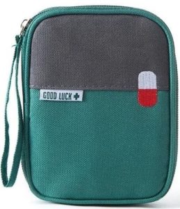 L'étui compact en tissu Oxford imperméable est idéal pour ranger les médicaments. Vous pouvez garder une trousse de premiers soins à la maison ou l'emporter avec vous sur la route. L'organisateur est léger, spacieux et ne laisse pas passer l'humidité. Se ferme avec une fermeture éclair. La poignée attachée le rend facile à transporter. La présence d'un grand rayon et de trois poches vous permet de trier les médicaments à votre guise. Le sac de trousse de premiers secours peut également être utilisé comme trousse de maquillage de voyage. Il peut facilement se glisser dans une valise ou une boîte à gants de voiture. Dimensions : 15x10x3 cm.