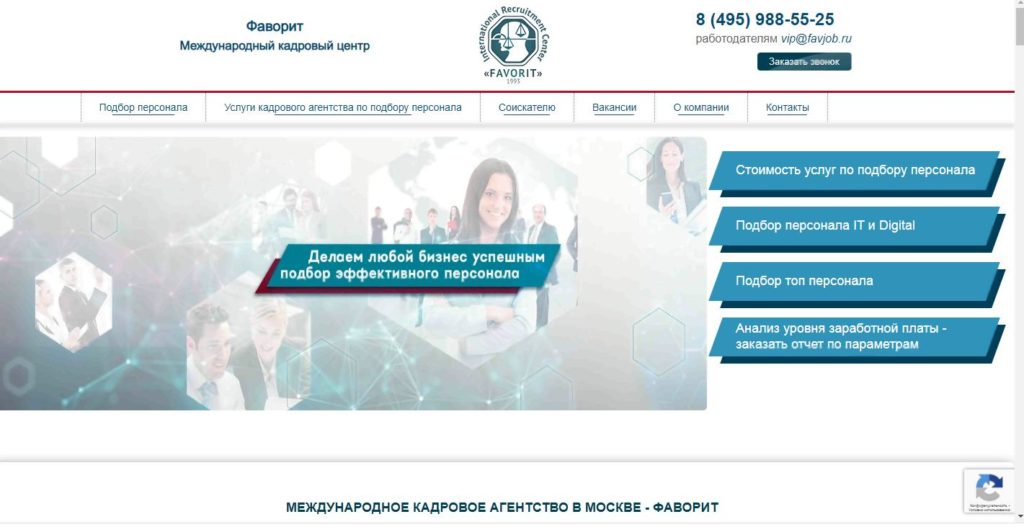 L'une des meilleures agences de recrutement de la capitale, engagée dans la sélection de personnel pour les entreprises de tous les domaines d'activité. Pour cela, 14 départements y ont été formés, chacun étant engagé dans l'un des domaines importants: médecine, industrie, construction, etc. Le personnel est sélectionné pour un travail permanent et temporaire.
