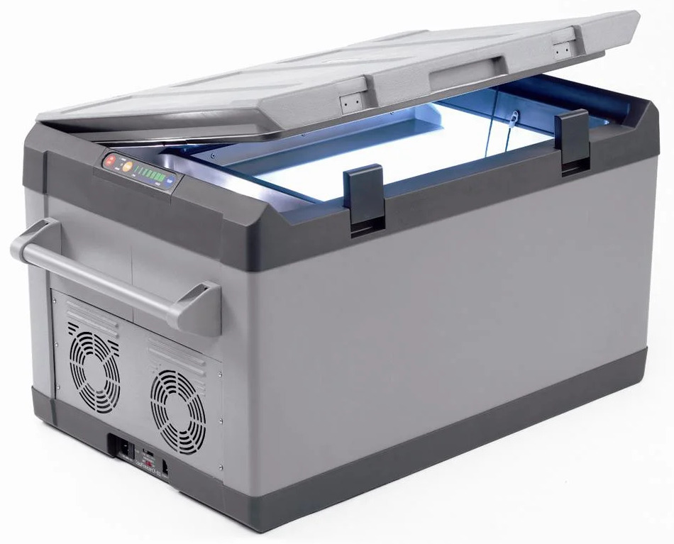 Ce modèle est considéré comme la meilleure offre pour une famille nombreuse ou une entreprise. Cela est dû à la capacité maximale de la chambre de refroidissement, qui est de 54 litres. En plus des compartiments alimentaires habituels, il dispose d'une section congélateur conçue pour 5 litres. La température de refroidissement peut atteindre -12°C. Le reste du conteneur refroidit les produits avec une différence de 30°C par rapport à l'environnement. Ce réfrigérateur de voiture est portable. Le poids est de 26 kg. Pour donner de la force à la porte lors du transport ou du déplacement de la machine, qui peut être placée de chaque côté de la structure, un loquet solide est situé dessus. Le représentant de cette marque a une possibilité universelle de recharge. Il est très économique, selon les consommateurs, de recharger l'appareil à partir d'une bouteille de gaz. Il utilise seulement 10,5 g de carburant par heure.