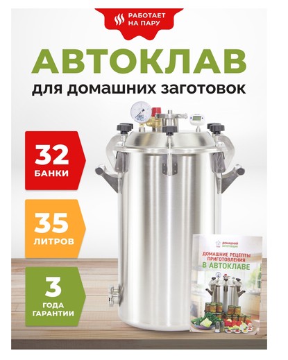 Ce modèle est destiné à la stérilisation à domicile avec une mini conserverie. Il vous permet de gagner du temps sur la cuisson des aliments en conserve. Les plats préparés avec cette machine ont une longue durée de conservation, peuvent être consommés sans danger et contiennent une grande quantité de substances utiles. La pression de travail de l'appareil varie de 0,32 à 0,39 MPa et la température de conservation est de 110 à 120 degrés Celsius. L'appareil contient 14 bocaux d'un demi-litre ou de 5 litres. Cet autoclave est compatible avec les réchauds à gaz.