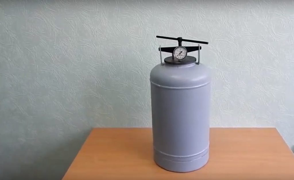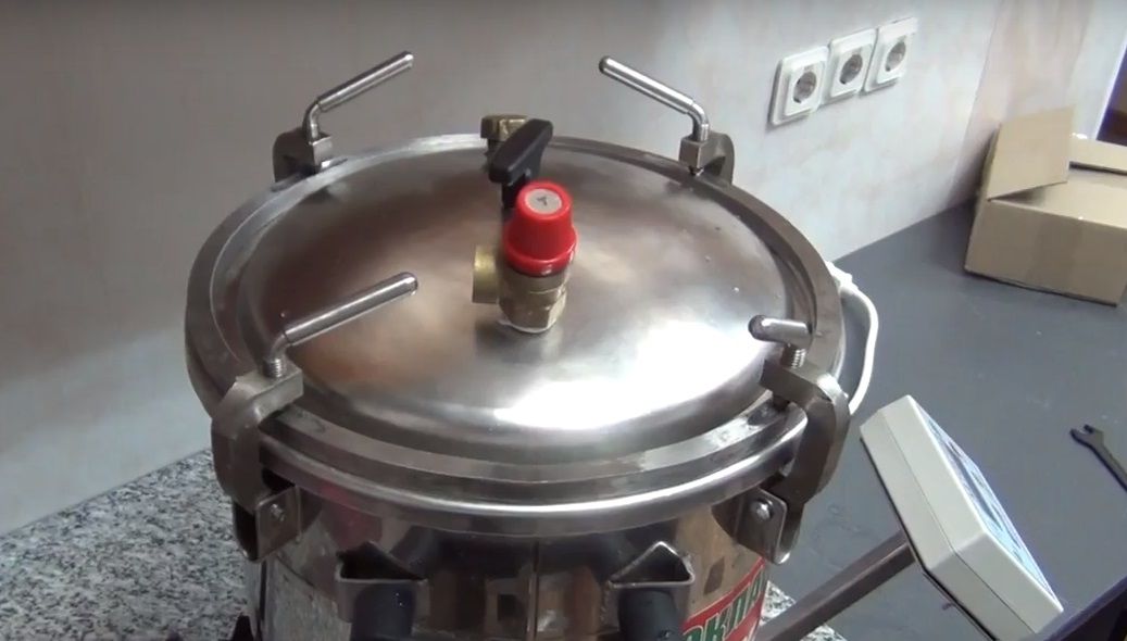 Le couvercle se ferme hermétiquement avec une vis, et un thermomètre intégré permet de surveiller le mode de stérilisation, en contrôlant la température, qui peut atteindre 120°C. Comme protection contre une pression excessive, une vanne d'urgence est prévue dans la conception.