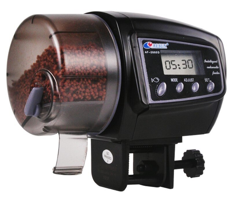 L'appareil universel conviendra à tous les types d'aquarium. Un modèle pour les aliments secs est fourni. Il peut être monté à la fois sur les murs et sur le couvercle. Le bunker contient 100 grammes de nourriture.La fréquence d'alimentation est ajustée individuellement, en fonction du nombre de poissons. Le programme vous permet de régler le mode d'alimentation jusqu'à 4 fois par jour.