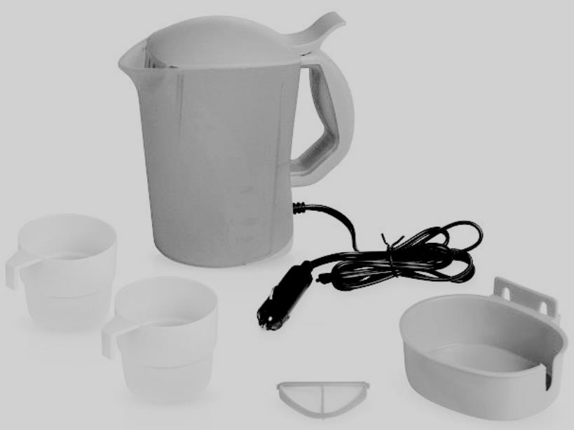 Appareil d'une puissance de 150 W et d'une contenance de 700 ml, est inclus dans l'allume-cigare. Équipé d'une poignée confortable pour la tenue, qui ne chauffe pas. L'ensemble contient deux tasses d'une capacité de 250 ml chacune, une passoire, un support pour la fixation au mur de la voiture et un support. Un appareil pratique et nécessaire pour ceux qui préfèrent sortir à la campagne plutôt que de s'asseoir près de la télévision. L'eau bouillante est suffisante pour qu'une famille de trois personnes savoure un thé chaud ou un délicieux déjeuner cuisiné.