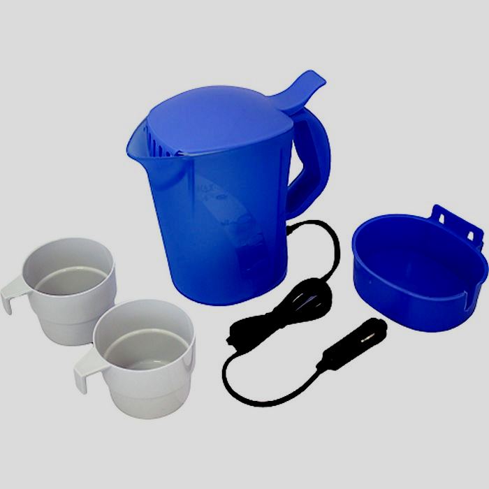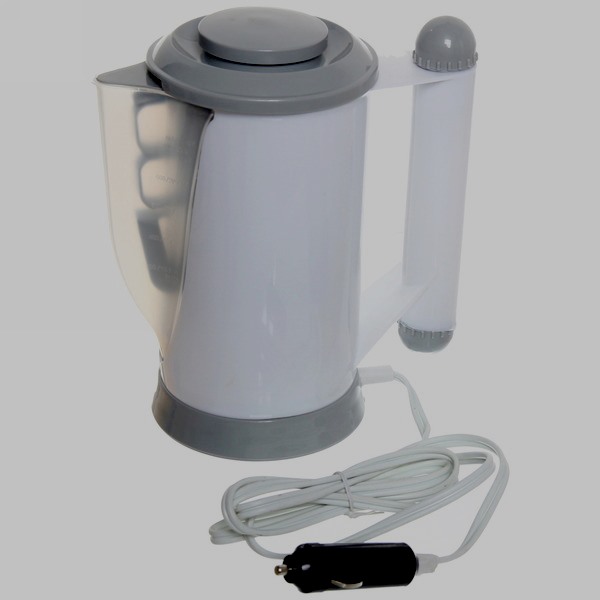 Le produit est acheté par des automobilistes habitués à «vivre» constamment dans leur propre voiture, à partir en voyage d'affaires, à emmener leur famille en vacances ou à voyager dans des endroits attrayants. Un volume de 700 ml suffit pour fournir de l'eau bouillante à cinq personnes. Il fonctionne à partir d'un allume-cigare 12 V. Il consomme 7,5 A de courant. Dans la fabrication du modèle, du plastique résistant à la chaleur est utilisé. L'ensemble est très pratique et se compose de deux tasses, d'une fixation sur la garniture de porte, d'une cuillère en plastique, d'un filet pour le brassage, d'un support spécial qui vous permet de chauffer les aliments pour bébés et d'une fourchette pratique. Tout peut être placé à l'intérieur de la bouilloire, à l'exception du support. Paramètres de l'appareil - 19,5 * 11 * 17 cm.Les produits sont fabriqués par la société canadienne Koolatron.