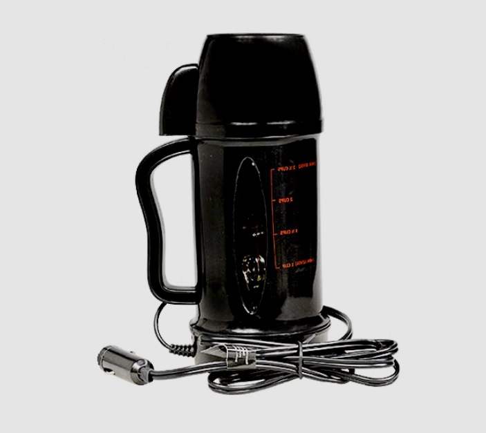 Tout automobiliste appréciera ce gadget. Équipé d'un cordon pour pouvoir le connecter à l'allume-cigare, d'un couvercle et d'une poignée pratique. Il n'y a aucune similitude avec le design. Chauffe l'eau jusqu'à 70 degrés. Conçu pour être utilisé par une seule personne. Le liquide chauffe rapidement. Le volume ne dépasse pas 0,5 litre. Le type d'alimentation est identique aux autres appareils.