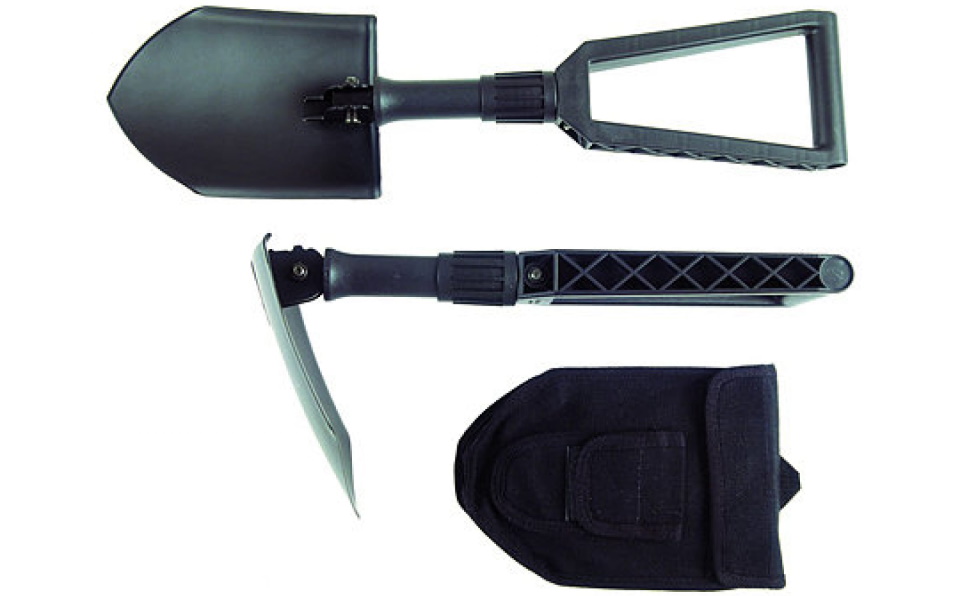 Modèle compact léger à l'usage des automobilistes et des voyageurs. Pour la fabrication, on utilise de l'acier au bore trempé, un alliage d'aluminium solide et durable et un plastique spécial. Un travail rapide et précis est garanti par la forme classique de la lame à baïonnette. Le pliage facile est assuré par une fixation solide. La partie de travail de l'outil tourne dans la position souhaitée pour faciliter le creusement ou le stockage. Peut agir comme une houe. Le kit est livré dans un étui en toile durable.