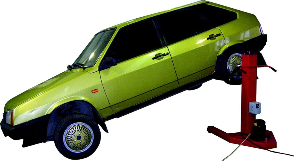 Le forfait comprend également un support de sécurité et des micros spéciaux. L'unité aux dimensions de 1060 x 720 x 1260 mm et pesant 130 kg est déplacée manuellement, fonctionne à une tension de 360 V. Le temps de levage de la voiture à la hauteur maximale est de 30 secondes.
