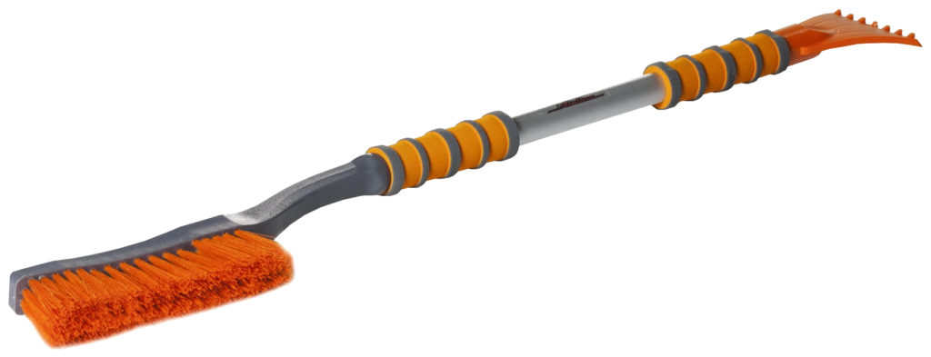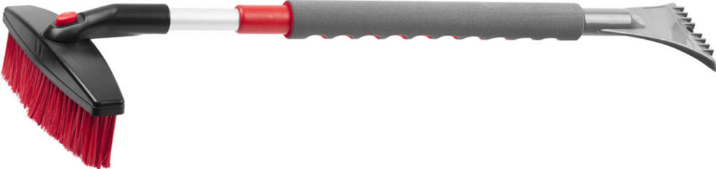 La brosse est résistante au gel. Son but est de nettoyer les vitres et la carrosserie de la neige et de la glace. Le verso du grattoir est équipé d'un peigne, sa tâche est d'éliminer l'eau. Grâce à la mobilité de la lame du peigne, l'utilisateur peut utiliser l'appareil selon l'angle souhaité. Les poils de la brosse sont en silicone. Il ne rayera pas la carrosserie.