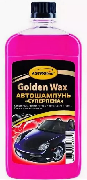 Shampooing pour voiture produit par la société nationale ASTROhim. Concentré à forte mousse.Contient des additifs spéciaux contre la corrosion et la cire. Après nettoyage, il forme un film polymère qui apporte de la brillance au corps. Résiste parfaitement à une variété de contaminants: de la poussière aux traces d'insectes. Il est totalement sans danger pour toutes les pièces de peinture, de plastique, de caoutchouc et de chrome.