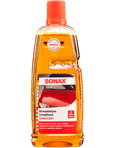 Un shampooing concentré légèrement alcalin. Il est considéré comme assez sûr, car il est fabriqué à base de tensioactifs biodégradables et il n'y a pas de solvants dans sa composition. De ce fait, il agit très doucement sur toutes les surfaces de la voiture, sans endommager le revêtement.