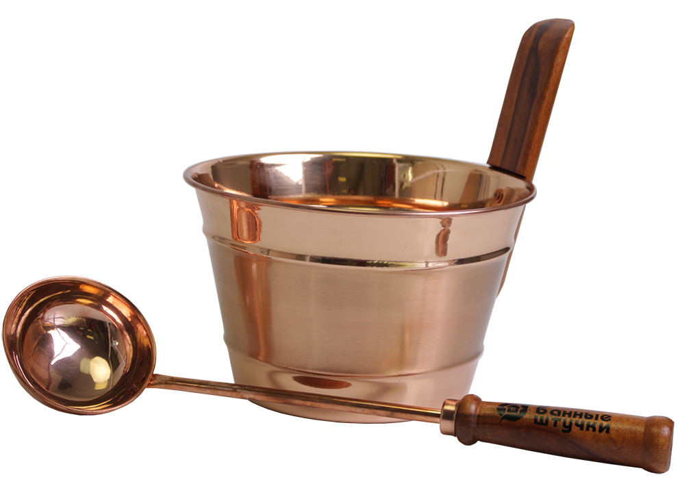 De plus, les fabricants indiens produisent un merveilleux ensemble pour bains et saunas, composé d'un récipient de 4 litres avec un manche en bois et d'un seau supplémentaire d'une capacité de 150 ml. Il est conçu pour créer de la vapeur en versant de l'eau sur le chauffe-sauna. Pour éviter les brûlures dues à l'évaporation à chaud du liquide, il est équipé d'un long manche en bois confortable. La partie métallique de l'ensemble est en cuivre de haute qualité, qui n'est pas sensible à l'effet destructeur de la corrosion, ce qui garantit une longue durée de vie.