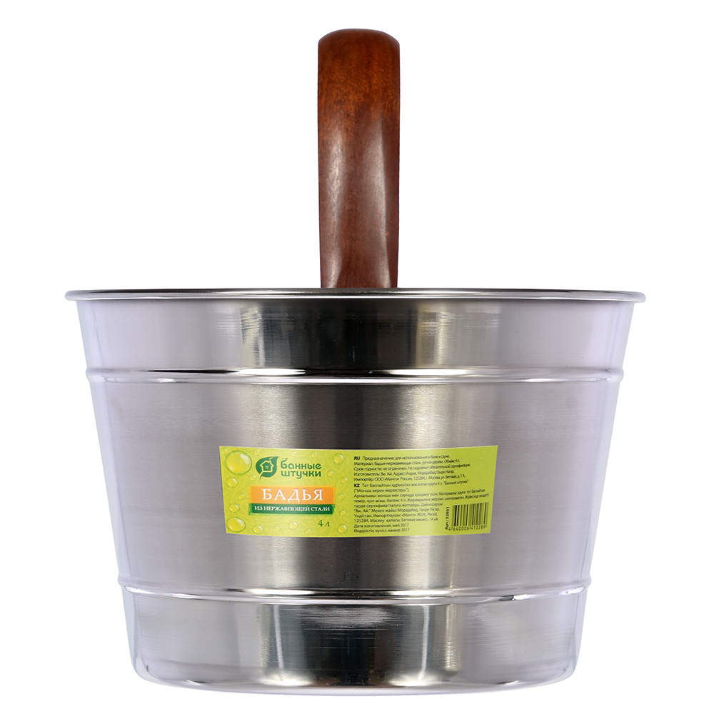 Le prochain représentant de la marque russe, en acier inoxydable, est ce produit. Il s'intègre harmonieusement à l'intérieur des saunas et des bains, qui ont un revêtement en cupronickel ou en métal dans leur conception. La capacité de ce produit est de 4 litres, ce qui le rend pratique à utiliser. Un matériau de haute qualité, non sensible à la corrosion, servira longtemps pour le plus grand plaisir des visiteurs et des propriétaires. La protection contre d'éventuelles brûlures imprudentes est assurée par un long manche en bois, solidement relié au corps.
