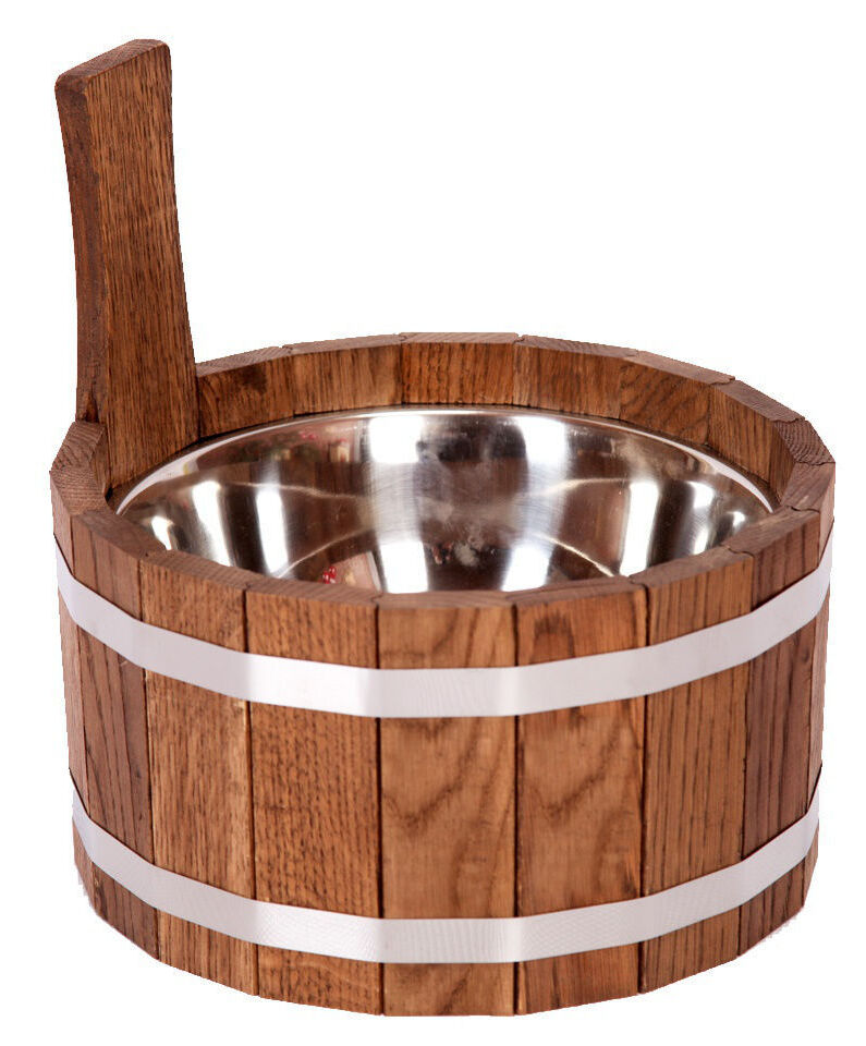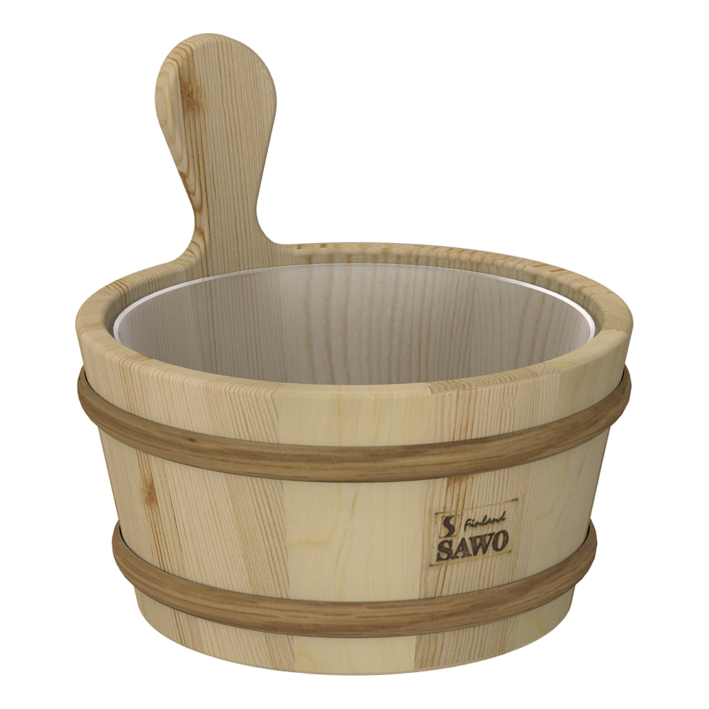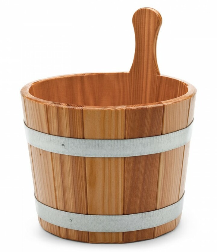 Le modèle des fabricants finlandais est fabriqué en bois de pin de haute qualité, qui subit un traitement spécial. Son volume est de 4 litres. Pour assurer la solidité et la fiabilité de la structure, des attaches en cerceaux métalliques en rotin ont été utilisées.En plus de la fixation solide de tous les composants en un seul ensemble, ils confèrent au produit un aspect original qui, sans aucun doute, s'intégrera dans n'importe quel intérieur d'un bain ou d'un sauna. Afin que ce produit puisse être utilisé conformément à sa destination immédiatement après l'achat sans trempage préalable prolongé, les fabricants l'ont équipé d'un insert interne en plastique. Cela élimine non seulement la possibilité de fuite de l'attribut, mais offre également une durée de vie plus longue. Pour la facilité d'utilisation et la sécurité des visiteurs, ce modèle est équipé d'une poignée sculptée, solidement reliée au corps.