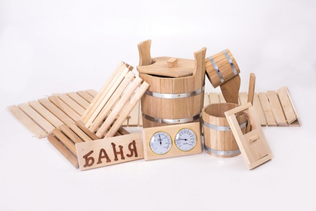 Si l'intérieur du sauna représente la présence d'une finition en plastique avec l'inclusion de métal, alors un ensemble d'attributs de matériaux similaires y conviendra. Dans une petite pièce, les gros accessoires auront l'air encombrants et encombrants. De plus, ils créeront une gêne lors de leur utilisation. Lors de l'utilisation de tels produits dans de petites pièces, il y a de nombreuses brûlures, à la fois pour vous et pour ceux qui vous entourent. Mais davantage d'outils de composants miniatures s'intégreront parfaitement dans un tel intérieur et offriront confort et confort des procédures.