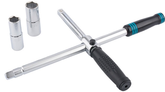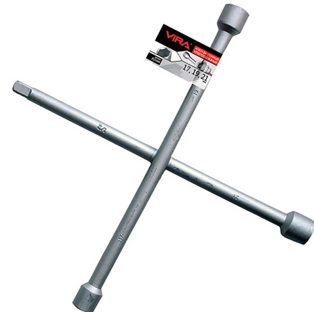 La version universelle en croix peut être utilisée dans n'importe quel domaine. La conception du modèle garantit que le couple souhaité est rapidement atteint sans trop d'effort. Il y a une différence avec les analogues: la présence dans le kit d'une des clés d'une taille non standard. Le modèle est maladroit, en acier à outils à haute résistance. Tailles de clé - 17, 19, 21, 1/2″ carré. Il peut fonctionner avec toutes les connexions serrées.