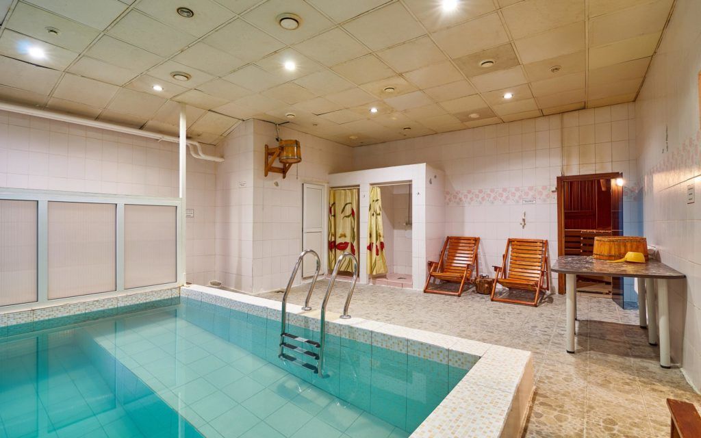 Une piscine luxueuse, équipée d'un éclairage et d'une fontaine, vous permettra de vous rafraîchir agréablement après le hammam. Sur le territoire du centre, vous pouvez boire un verre de bière avec des collations de poisson tout en discutant avec des amis ou prendre un repas copieux et savoureux en commandant de la viande grillée, du pilaf. Pour les partisans d'un mode de vie sobre - boissons gazeuses toniques, tisane.