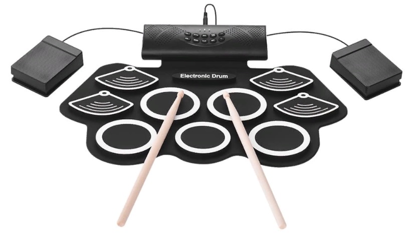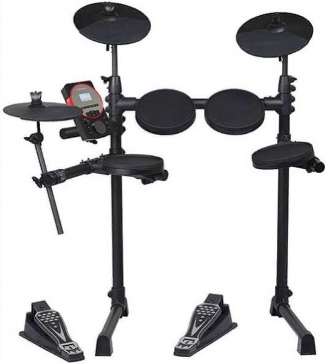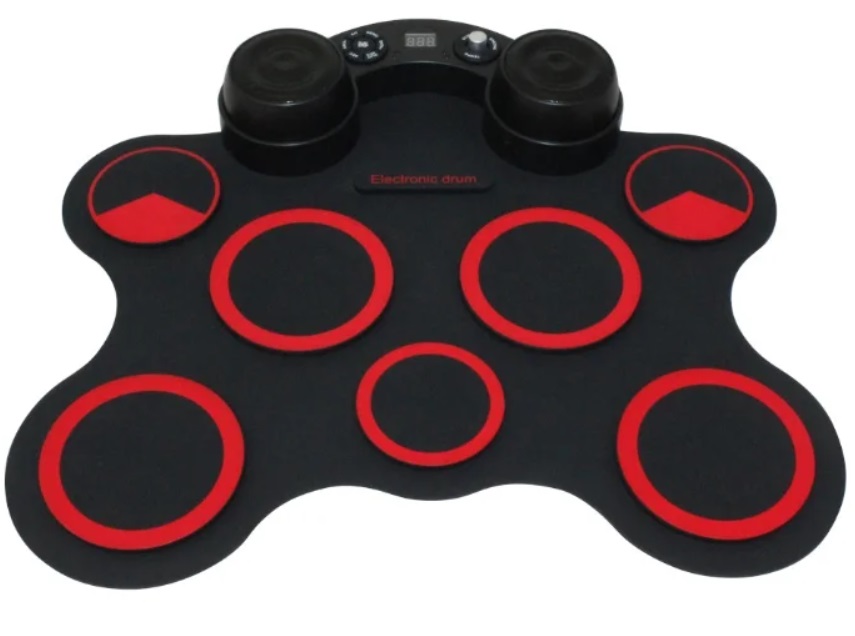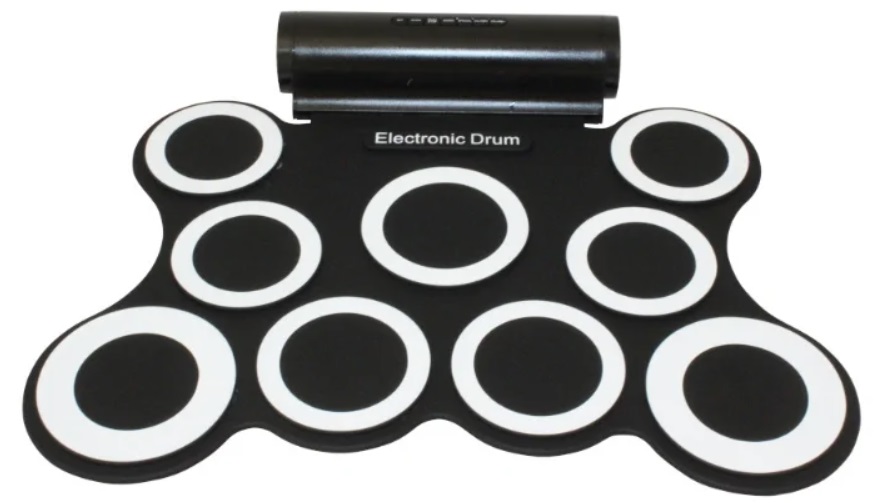 Instrument avec mélodies prêtes à l'emploi : 3 rythmes, 8 morceaux de démonstration et 5 styles sonores (pop, rock, latin, électro/edm, percussion). Il peut être acheté pour les débutants dans le domaine ou pour les enfants. Le corps est en silicone, équipé de 9 tambours et de deux pédales auxiliaires (grosse caisse, hit-hat fermé). Le kit de livraison comprend un câble de connexion (alimentation secteur) et des bâtons. La masse de la structure entière est de 1 kg 200 g.