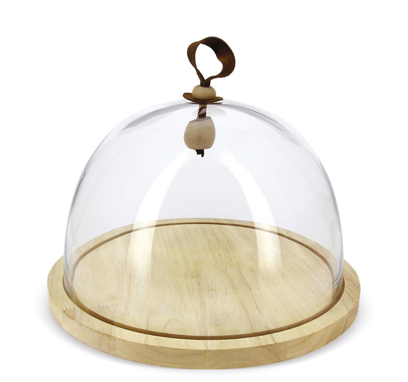 Le modèle en verre mince convient à la fois à un usage domestique et à des lieux de restauration. Le modèle est livré avec un plateau en bois, il est donc souvent utilisé pour servir des pizzas et des produits à base de viande. Le couvercle s'adapte parfaitement au plateau et les produits non seulement ne perdent pas leur goût, mais ne s'altèrent pas non plus.