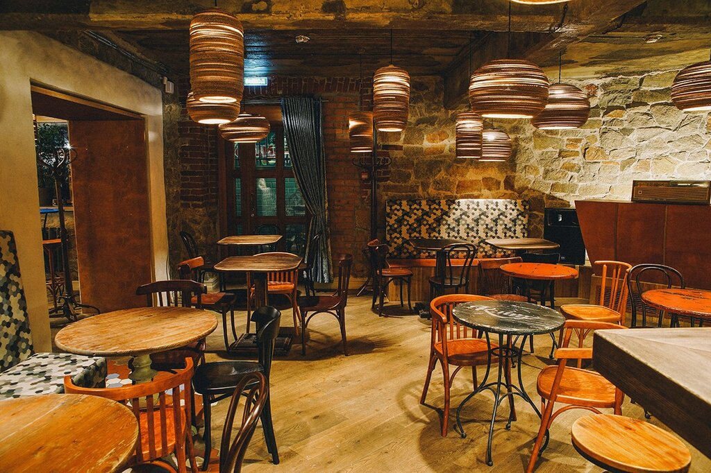 Séparément, nous pouvons mentionner l'intérieur, qui est conçu dans un style historique élégant. Ici, vous avez des pierres et des lustres vintage - tout cela ensemble se détend et donne un incroyable sentiment de paix. Une cave cosy dans laquelle chaque visiteur se sent bien et à sa place.