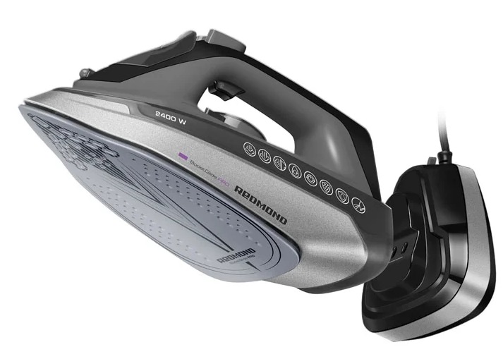 Un tel appareil de la société Redmond n'est pas seulement un fer à repasser, mais un fer 3D qui a de nombreuses fonctions. Sa principale caractéristique est la possibilité de l'utiliser à la fois avec une connexion filaire au réseau et sans fil à l'aide d'un socle de charge.Cette fonctionnalité facilite le repassage du linge de lit et des vêtements avec de nombreux éléments où vous devez tourner l'appareil dans différentes directions.
