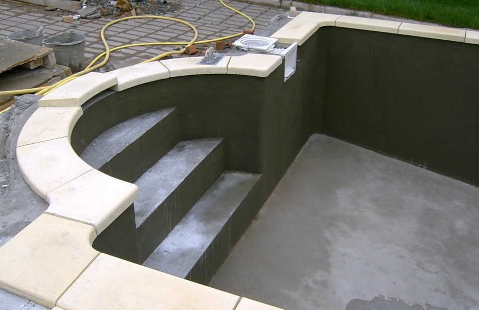 Les structures en béton monolithique sont recommandées pour les grandes surfaces et pour les modèles d'intérieur, la version extérieure d'un petit bol peut être réalisée à partir de blocs.