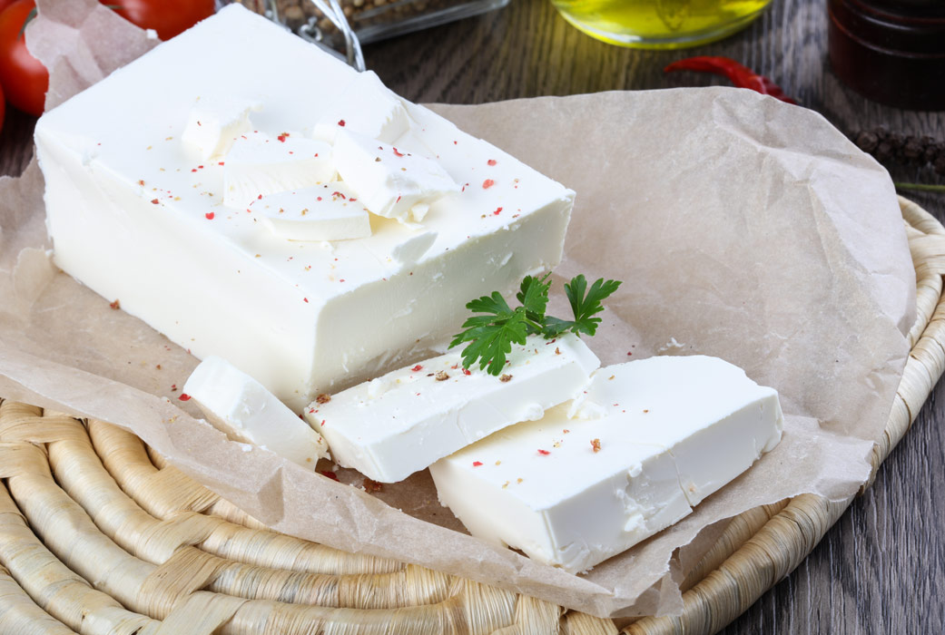 La feta est l'un des fromages marinés les plus populaires. Il faut environ 3 mois pour mûrir. Consistance douce, légèrement caillée, goût salé mais plutôt délicat. Fabriqué à partir de lait de brebis ou de chèvre.