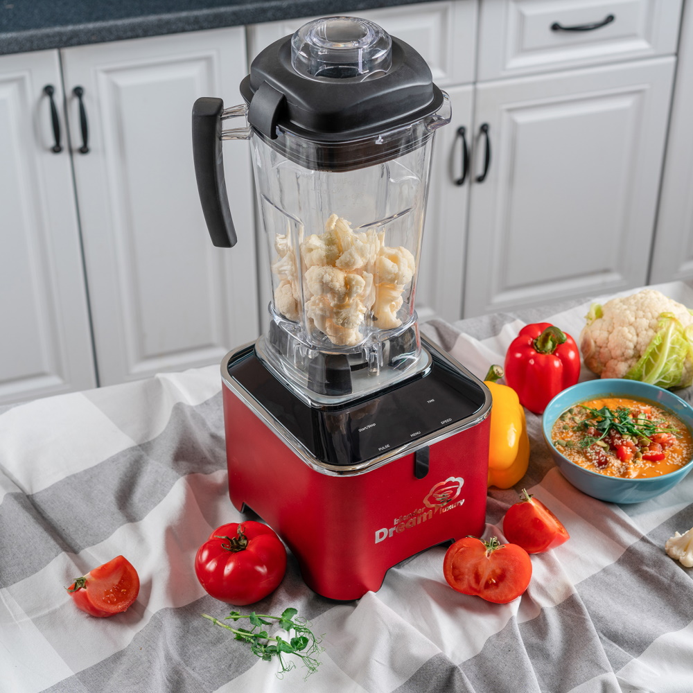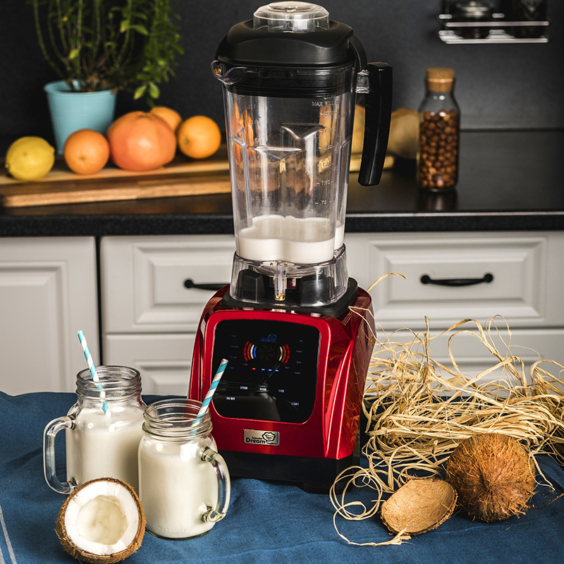 La puissance de l'appareil est de 1500 watts. La base est en métal. L'unité est contrôlée par un système électronique. La vitesse de rotation est régulée en mode lisse.Le récipient est en plastique résistant. Le mélangeur a un réglage automatique pour broyer la glace, broyer les noix, faire des cocktails et des smoothies. À l'aide d'accessoires, vous pouvez hacher différents ingrédients ou en faire une purée. La pâte de noix est préparée en quelques secondes. Pour ce faire, l'appareil dispose d'un mode pulsé. Le panneau de commande est situé sur la surface extérieure du boîtier en acier.