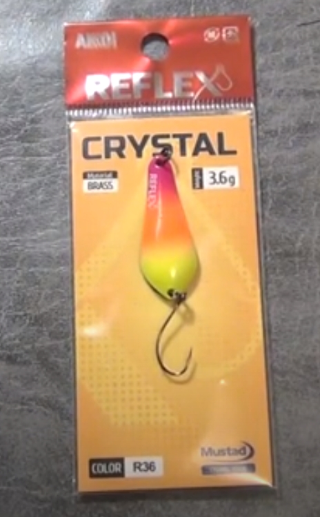 Crystal est traduit de l'anglais par cristal, ce nom caractérise la forme inhabituelle du tacle. La configuration allongée et étroite permet une animation de balayage pour imiter les insectes avec des ailes de libellule. La similitude du spinner avec le représentant de la base alimentaire du prédateur assure une bonne capturabilité d'Akkoi Reflex Crystal.
