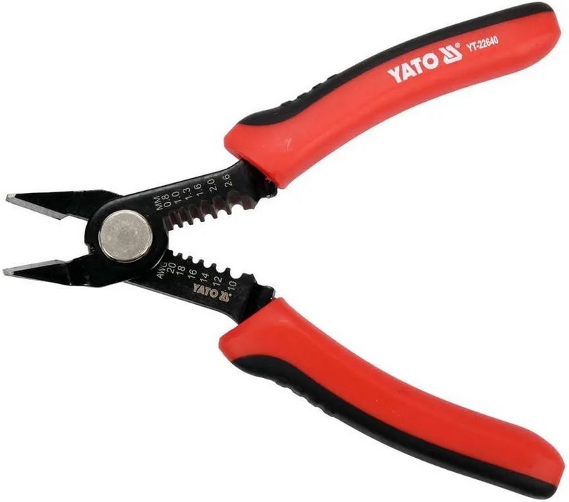 L'échantillon est conçu pour retirer la protection isolante des câbles unipolaires / multipolaires et peut également couper les fils. Les mâchoires sont pliées à un angle de 45° par rapport au plan principal, ce qui garantit une coupe à ras précise même dans les zones difficiles d'accès. De plus, il convient de noter que les mâchoires de coupe sont durcies à l'aide de courants à haute fréquence, ce qui augmente la durée de vie globale de l'appareil. Le coût recommandé pour les chaînes de magasins est de 420 roubles.