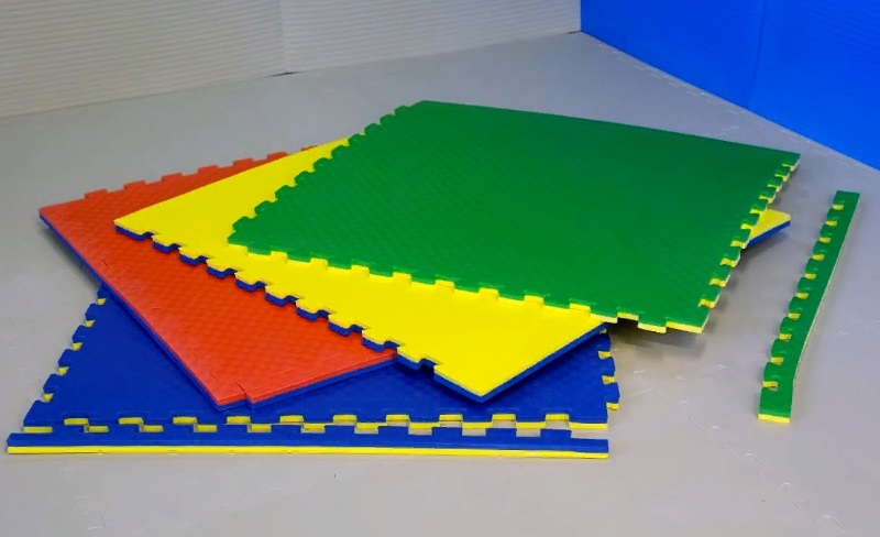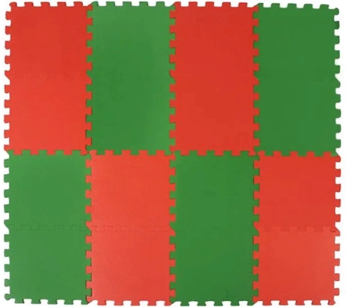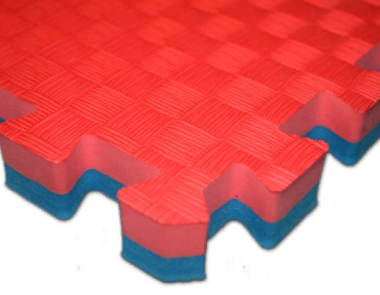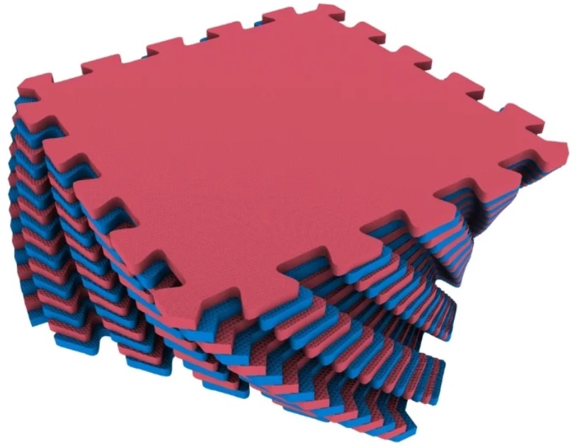 Le produit est fabriqué en couleur rouge-bleu, ce qui vous permet d'assembler le tapis de la coloration souhaitée. Le kit est livré avec une paire de bandes de bordure qui protègent les fixations de la déformation. Les tapis d'une densité de 200-220 kg/m³ sont utilisés dans les salles de sport pour le karaté, la boxe et d'autres sports d'impact. Il convient également aux cours de yoga et aux chambres d'enfants. Le coût d'un module est de 2190 roubles.