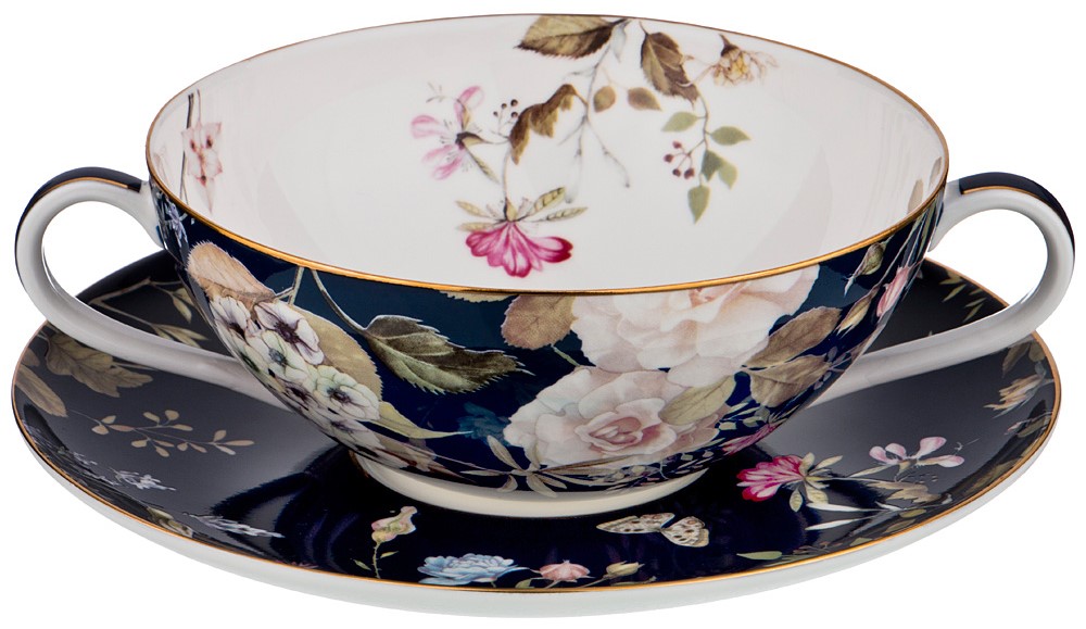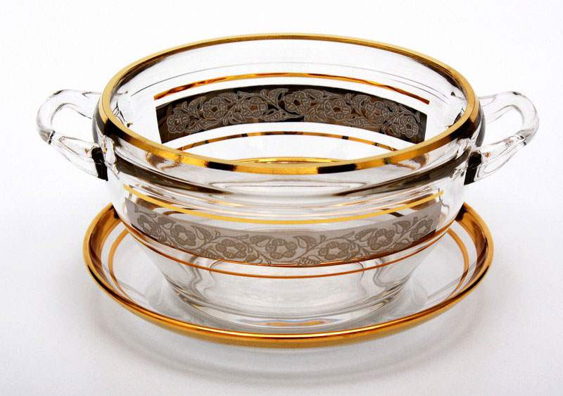 Bouillon - plats portionnés pour servir des plats chauds, des bouillons ou des salades. Munie d'une anse (ou de deux anses) ou « oreilles », présentée sous forme d'assiette ou de mug. Parfois, l'ensemble est également livré avec des soucoupes et des couvercles. La contenance moyenne de ce type de plats : 0,5 litre, ils vendent aussi de grands bols à bouillon, jusqu'à 1,0 litre.