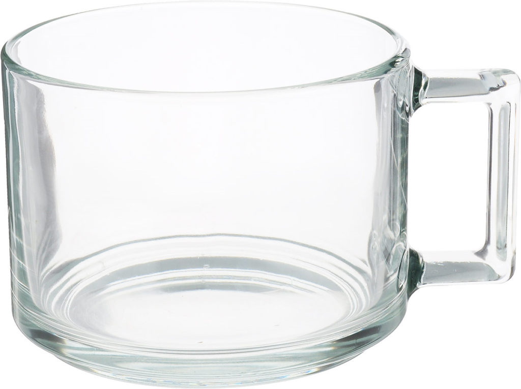 Mug rond en verre transparent à haute résistance (verre de silicate), diamètre 11,5 cm, hauteur 9,0 cm, volume 625 ml. Production domestique. La poignée ergonomique permet de poser facilement la tasse sur la table. La transparence vous permettra d'y servir non seulement des soupes, mais également divers bouillons. Prix : 314 roubles.