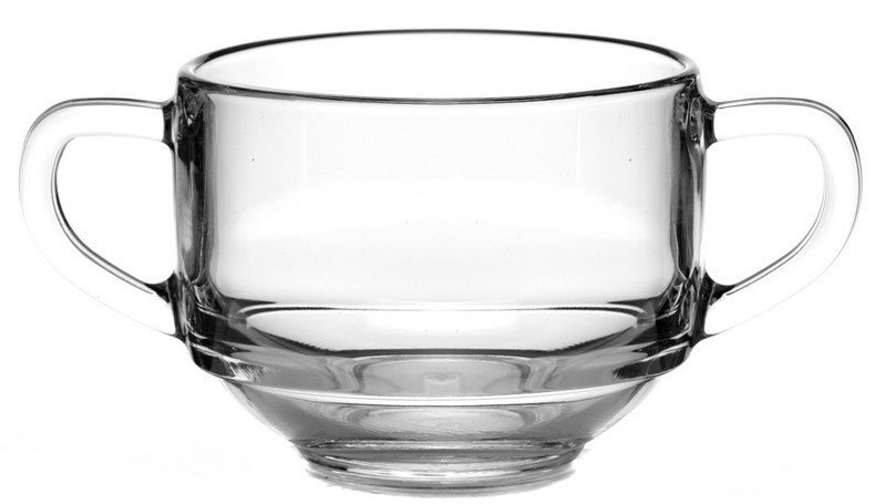 Le bol à bouillon est en verre résistant aux chocs, sous la forme d'une tasse de 0,5 litre, avec une grande poignée confortable. modèle de production domestique. Pratique à laver au lave-vaisselle. Il prend peu d'espace de stockage et a une apparence attrayante. Prix : 160 roubles.