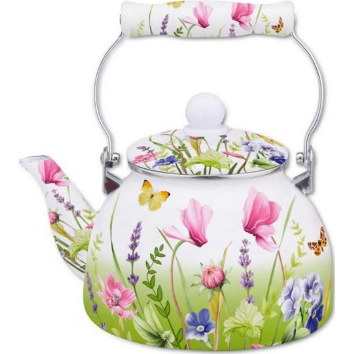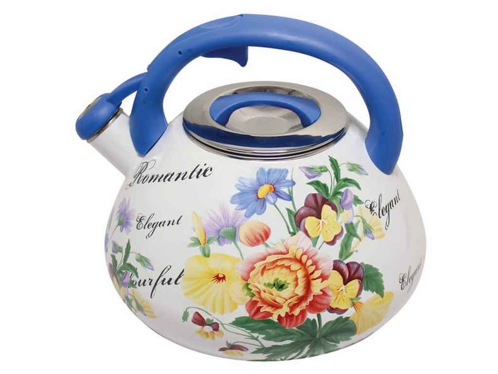 Le modèle en acier inoxydable émaillé a une belle couleur florale et est conçu pour 2,5 litres d'eau. Convient à la plupart des feux : gaz, vitrocéramique, induction et électrique. La hauteur du produit sans anse est de 12,5 cm, le fond a un diamètre de 18 cm Le récipient peut être lavé au lave-vaisselle.