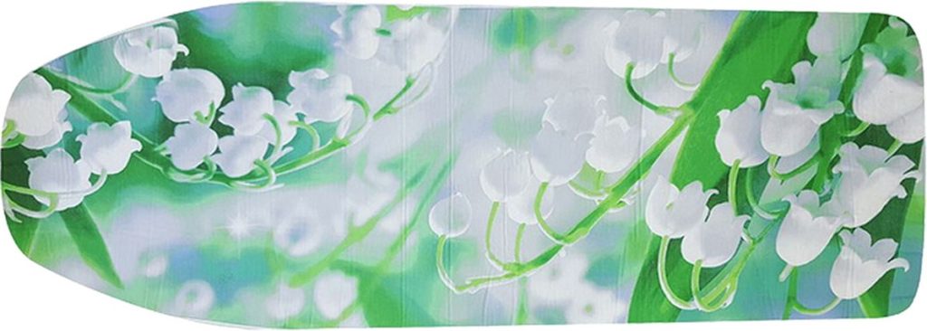 Cette option créera une atmosphère de vacances, de printemps. L'image a une image vivante d'une clairière avec des lys de la vallée. Le support en caoutchouc mousse de 3 mm d'épaisseur donne de la douceur au repassage, protège la planche de l'humidité et de la surchauffe. Il est recommandé de choisir une option de quelques centimètres plus grande que le lieu de repassage, cela permettra d'ajuster la taille au plus juste. Dimensions : 140x50 cm Prix : 581 roubles.
