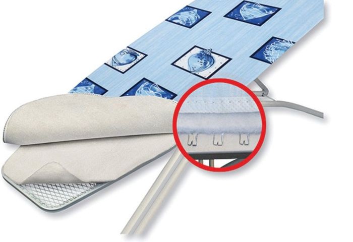 Un cordon avec un loquet fixe solidement le tissu sur la surface, garantit un repassage facile. La doublure est résistante à la chaleur, ne permet pas à la surface de surchauffer, il n'y a aucune trace de fer dessus. L'entreprise propose plusieurs couleurs au choix. Dimensions : 130x45 cm Coût : 5200 roubles.