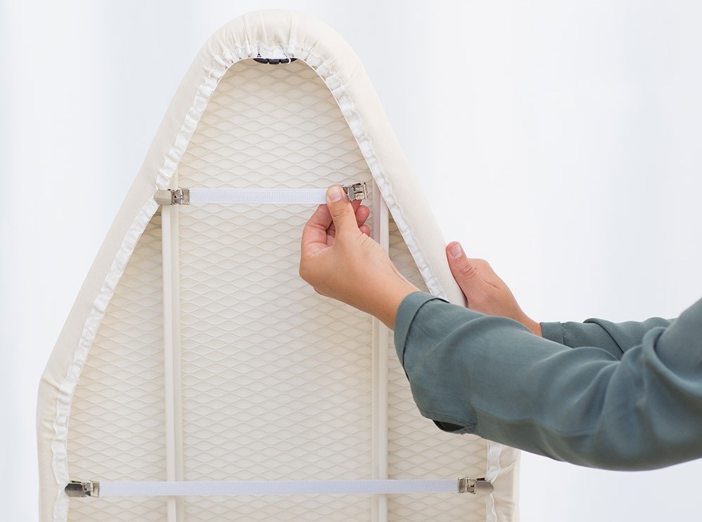 Les modèles avec une bande élastique peuvent fixer le boîtier de manière lâche sur la surface, il sera donc difficile de repasser, le linge sortira. Il faut connaître exactement les dimensions de votre planche pour ne pas être déçu de l'achat. Les options de lacets sont plus polyvalentes, avec un cordon qui parcourt tout le périmètre, ce qui vous permet de changer la taille du boîtier si nécessaire. L'essentiel est de choisir la bonne fixation afin qu'elle ne diverge pas pendant le travail.